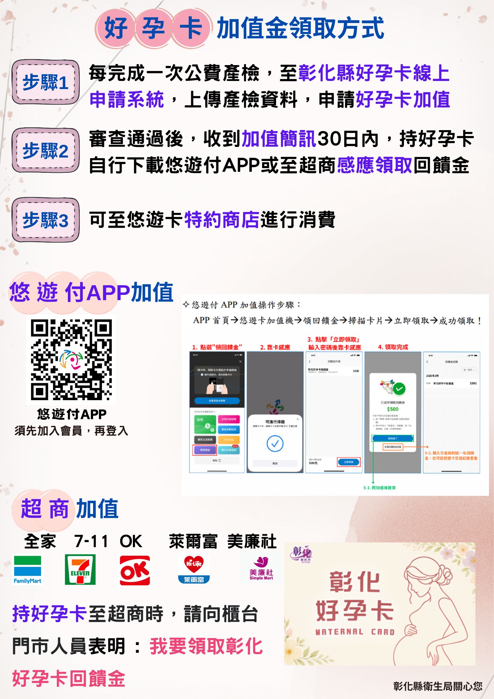 - 彰化好孕卡 加值金領取方式 https://www.chshb.gov.tw/media/2281020270#gsc.tab=0